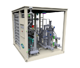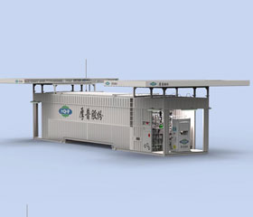 L-CNG containerized skid-mounted filling device is the equipment integrated with the storage tank, plunger pump, offloading and pressurization systems on one containerized skid with metal cofferdam. Only high pressure CNG cylinder, control system and instrument air system are separately installed outside the skid and can be operated through simple connection, installation and electrification.