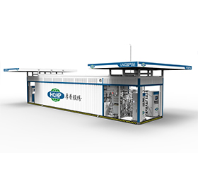 Контейнерная АЗС СПГ относится к тому, что оборудование, такое как резервуар, насос, газификатор, газозаправочная машина СПГ и т.д., смонтировано на одинаковых камерных салазках (с металлической перемычкой). Вне контейнера только предусмотрены система управления и система приборного воздуха ; станция может эксплуатироваться при включении питания после простого монтажа.