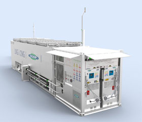 L-CNG containerized skid-mounted filling device is the equipment integrated with the storage tank, plunger pump, offloading and pressurization systems on one containerized skid with metal cofferdam. Only high pressure CNG cylinder, control system and instrument air system are separately installed outside the skid and can be operated through simple connection, installation and electrification.