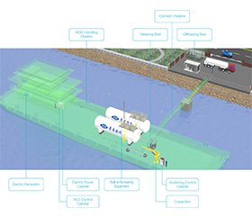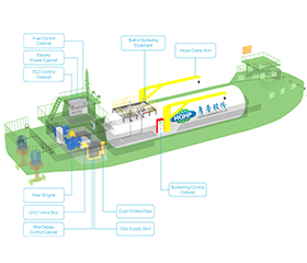 This kind of bunkering system is based on LNG fuel power ship, which has low requirements on water conditions.