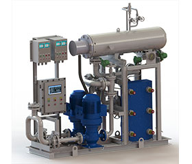 The marine ethylene glycol heating system is mainly composed of a centrifugal pump, heat exchanger, pipeline valves and monitoring instruments, etc. The mixed liquid of ethylene glycol and water is used as the heat exchange medium, which is heated to the required temperature by the heat exchanger with the cooling liquid of the marine engine (mainly the jacket water), and then delivered to the back-end equipment. The centrifugal pump works for system circulation. Application and features 1. Compact structure and high degree of integration. 2. Low heat loss and high heat exchange efficiency. 3. Auxiliary electric heating, rapid warming in cold start. 4. Easy cleaning and long service life. Application:Applicable to the gas supply system of all kinds of vessels powered by natural gas.